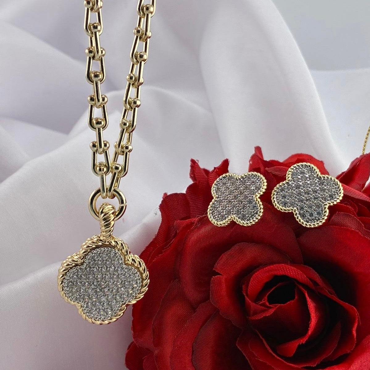 Este set Victoria combina elegancia y delicadeza con su diseño Perfecto para quienes buscan un accesorio refinado y atemporal, este conjunto destaca por su acabado impecable y su atractivo visual único. Ideal para ocasiones especiales o para añadir un toque de distinción a tu día a día.